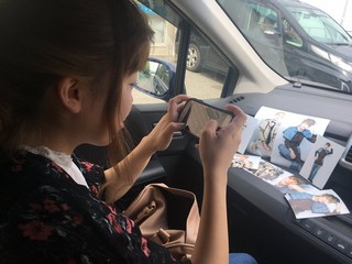 車の中で並べて写真をとってる。