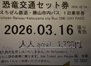 画面加工したら見えにくくなったけど、1700円でえちぜん鉄道と恐竜博物館行きのバスに乗り放題のチケット。