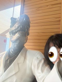 ここにいた恐竜博士とも自撮りするおばさん。