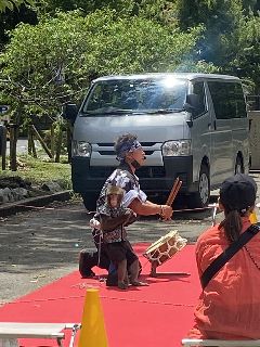 寄声をあげながら、太鼓を叩きつづけて、