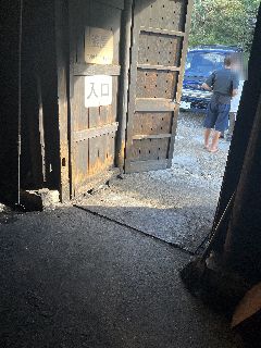 昔の田舎の細い道をいくと、おじさんが「店の前はとめられへんで~」って第三駐車場を案内してくれました。