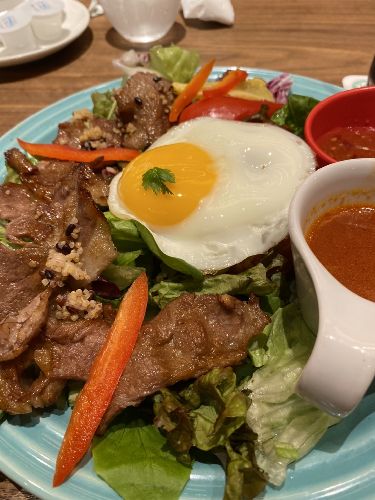 指定席なので入場時間すぎても開始時間までにもどってこれたらokなので、ご飯食べに行こうということに。