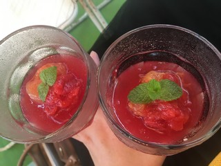 パンナコッタの甘い上のさっぱりすっぱいスモモゼリーが