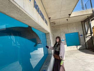 イルカショーの前にイルカとご対面