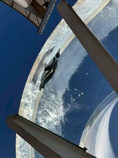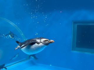 それを真上の透明プールから眺めているペンギンもいました![]()