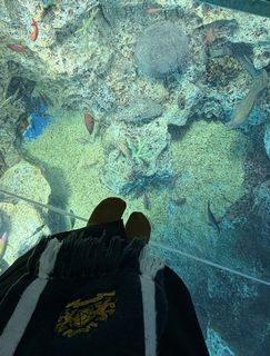 サンゴ礁とお魚の水槽の上を歩けるのです。