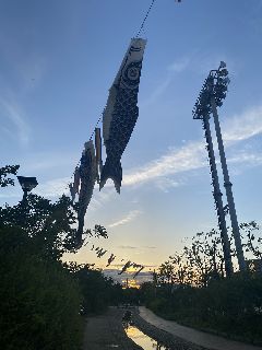 こいのぼりが夕日に照らされておりました。