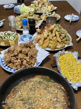 私はお好み焼きつくって持って行った。