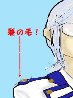 肩のボタンに白い髪の毛(?)が絡まってる!