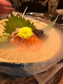 スモークがでている鮭のお刺身!!
