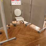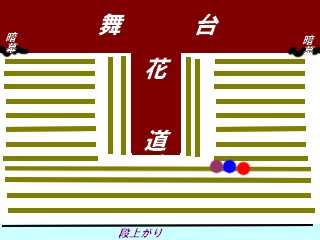 客席と一緒にだと思ってメイトさんたちみんな真ん中によったり、身支度したり・・・。