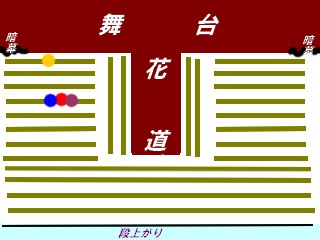 舞台に向かって左側側面にメンバーが並びそれぞれのメンバーの前にメイトが並びます。